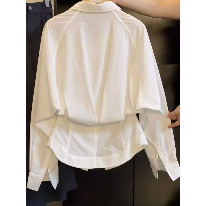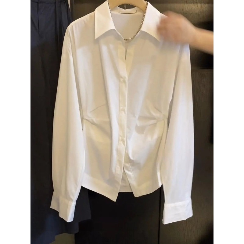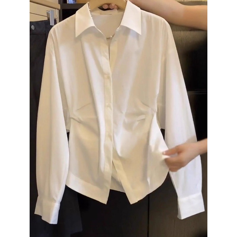 春秋季 大码 衬衫 polo领白色长袖 胖mm收腰遮肚子显瘦高级感上衣 女装