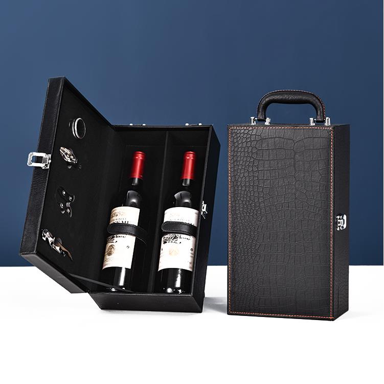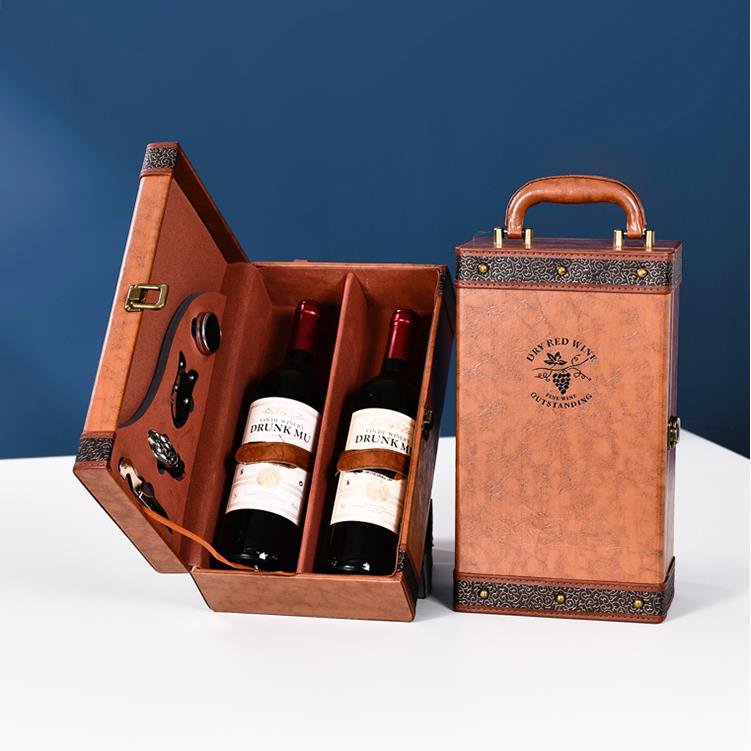 现货红酒包装 皮质葡萄酒礼品盒空盒高档皮盒红酒箱定制 礼盒双支装