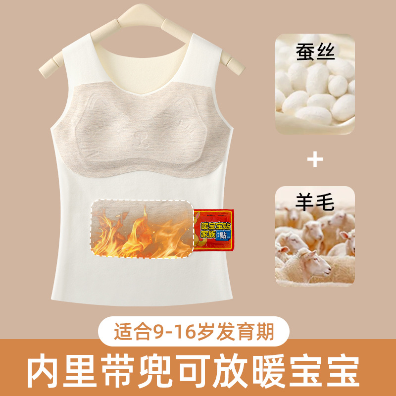 德绒磨毛保暖背心少女大童发育期内衣秋冬带胸垫免穿文胸内搭贴身