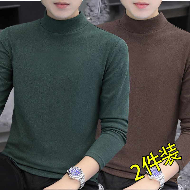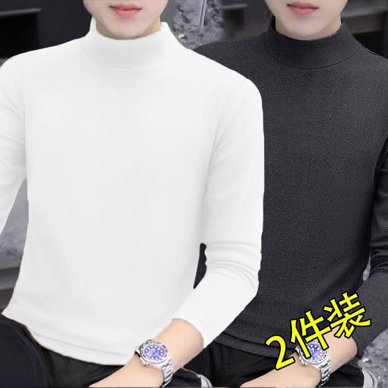 长袖 男士 半高领双面德绒打底衫 t恤上衣服潮牌男内搭 发货快