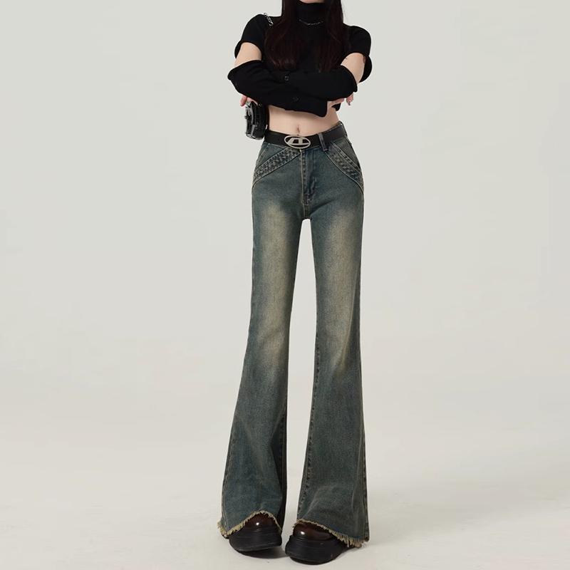 九分裤 乐町弹力牛仔裤 复古少女高腰显瘦喇叭裤 新款 型 2025年春季