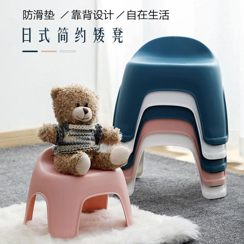 塑料靠背凳子客厅懒人换鞋 椅矮凳创意家用儿童小板凳加厚可爱方凳