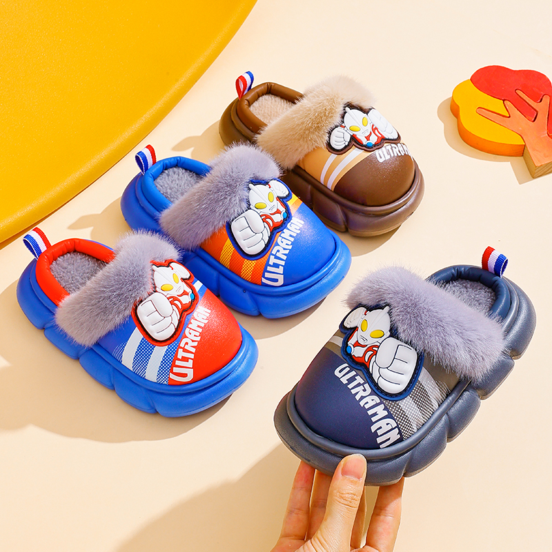 男孩冬天 室内家居毛绒宝宝拖鞋 奥特曼儿童棉拖鞋 男童秋冬2025新款