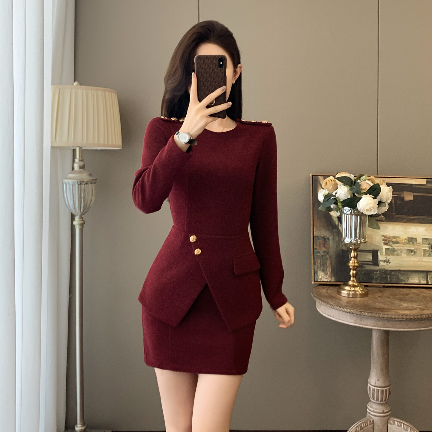 连衣裙法式 气质干练职业通勤西装 场合工装 高级感正式 红裙 裙女秋季