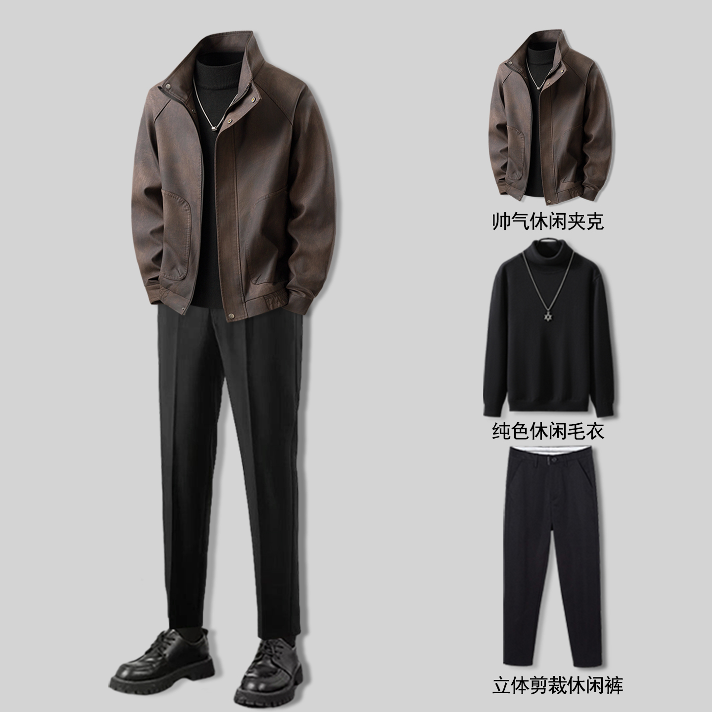男 套装 春秋薄款 皮衣男外套防水耐磨中老年干活工作服皮衣皮裤
