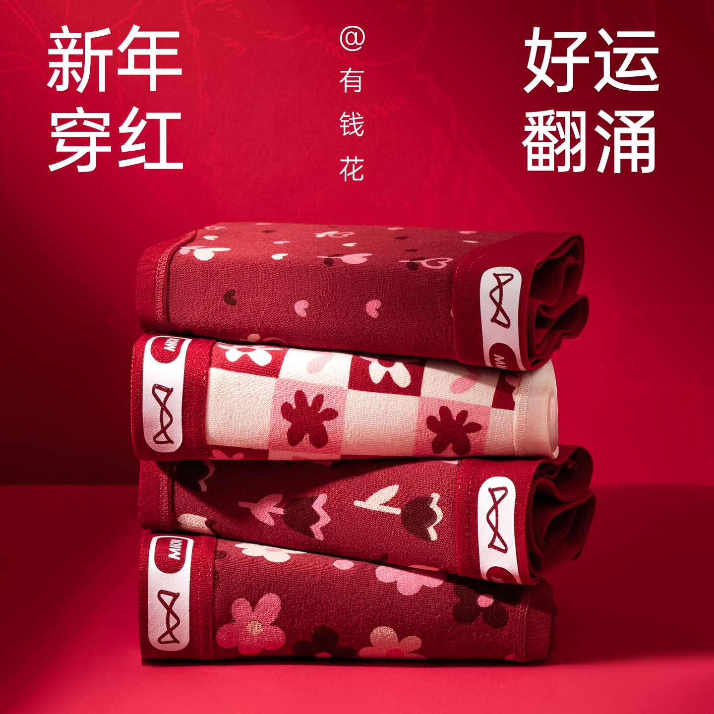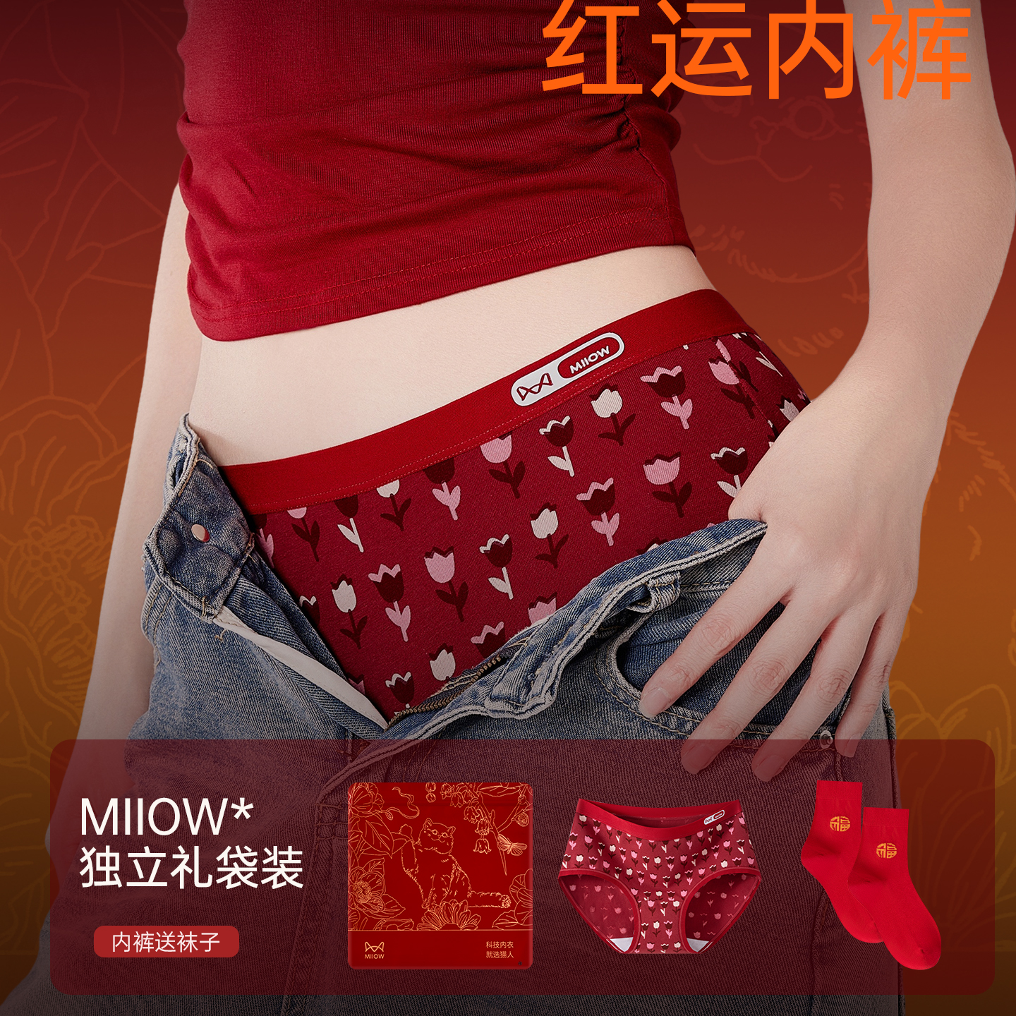 中腰印花纯棉抗菌裆透气三角短裤 猫人红内裤 女本命年蛇年2025新款