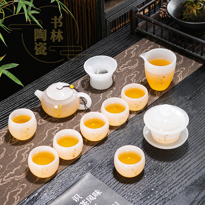 礼盒装 新款 高档功夫茶具套装 景德镇官方陶瓷浮雕山水三才盖碗中式