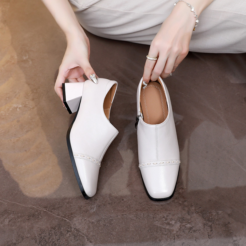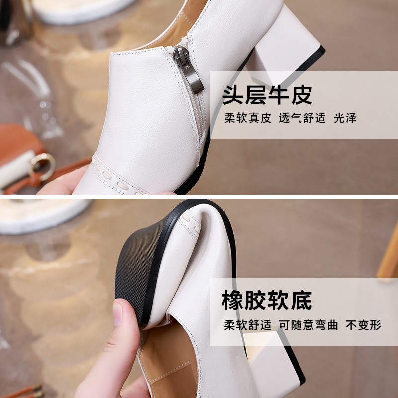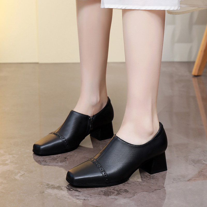 舒适软底妈妈鞋 粗跟中跟工作皮鞋 秋 女新款 313233头层牛皮方头单鞋