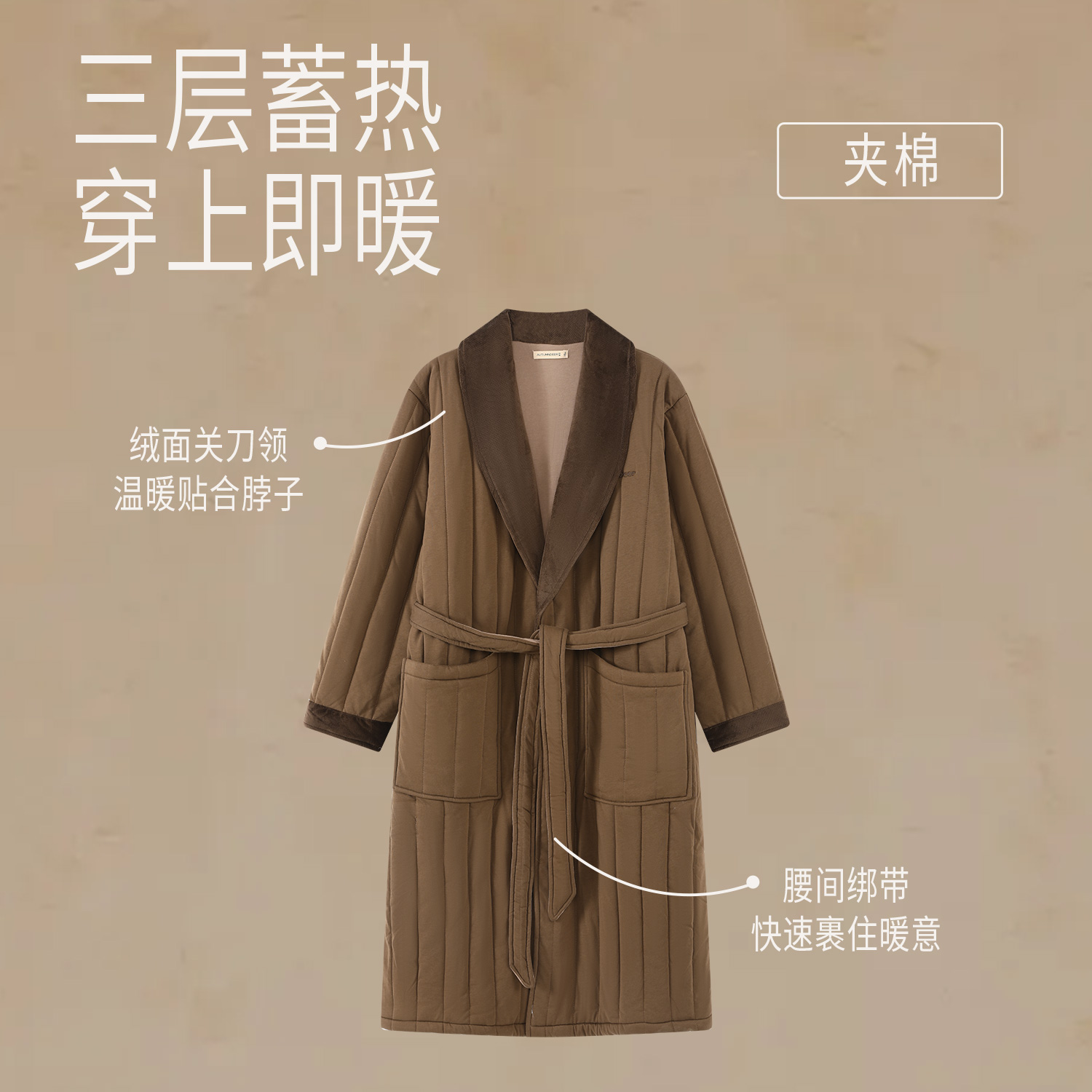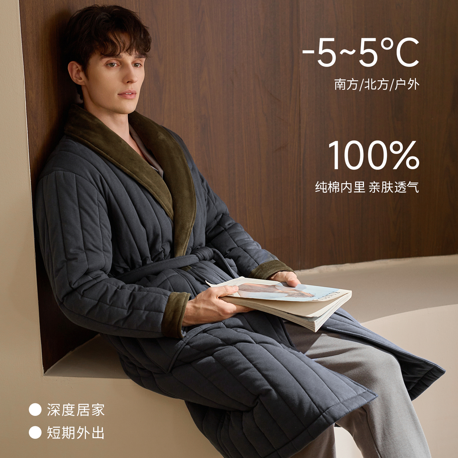 家居服 睡袍夹棉冬天浴袍男士 秋鹿睡衣男冬季 纯棉空气层加厚中长款