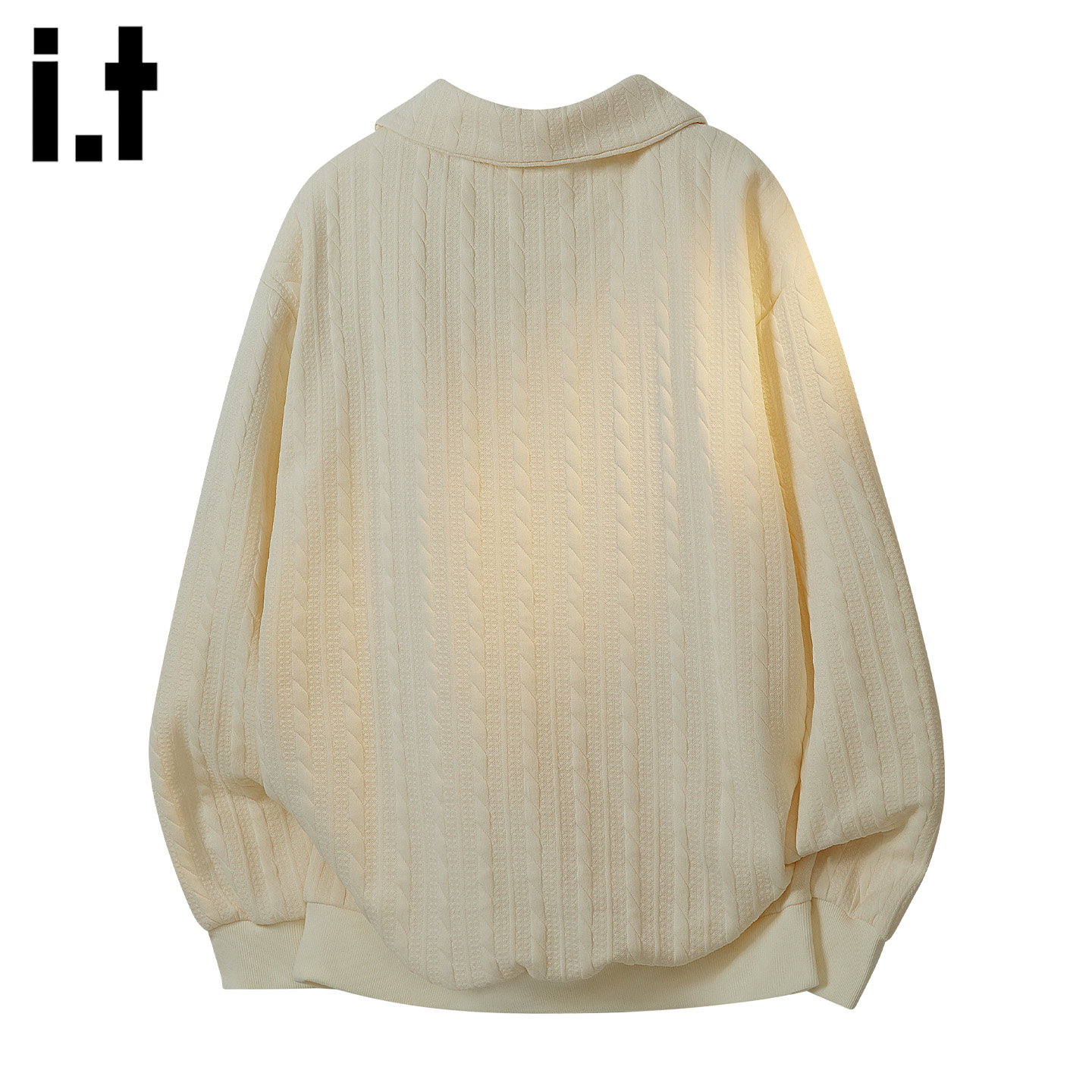 Lilbetter高密厚实老钱风小翻领毛衣男女同款 宽松POLO领针织衫