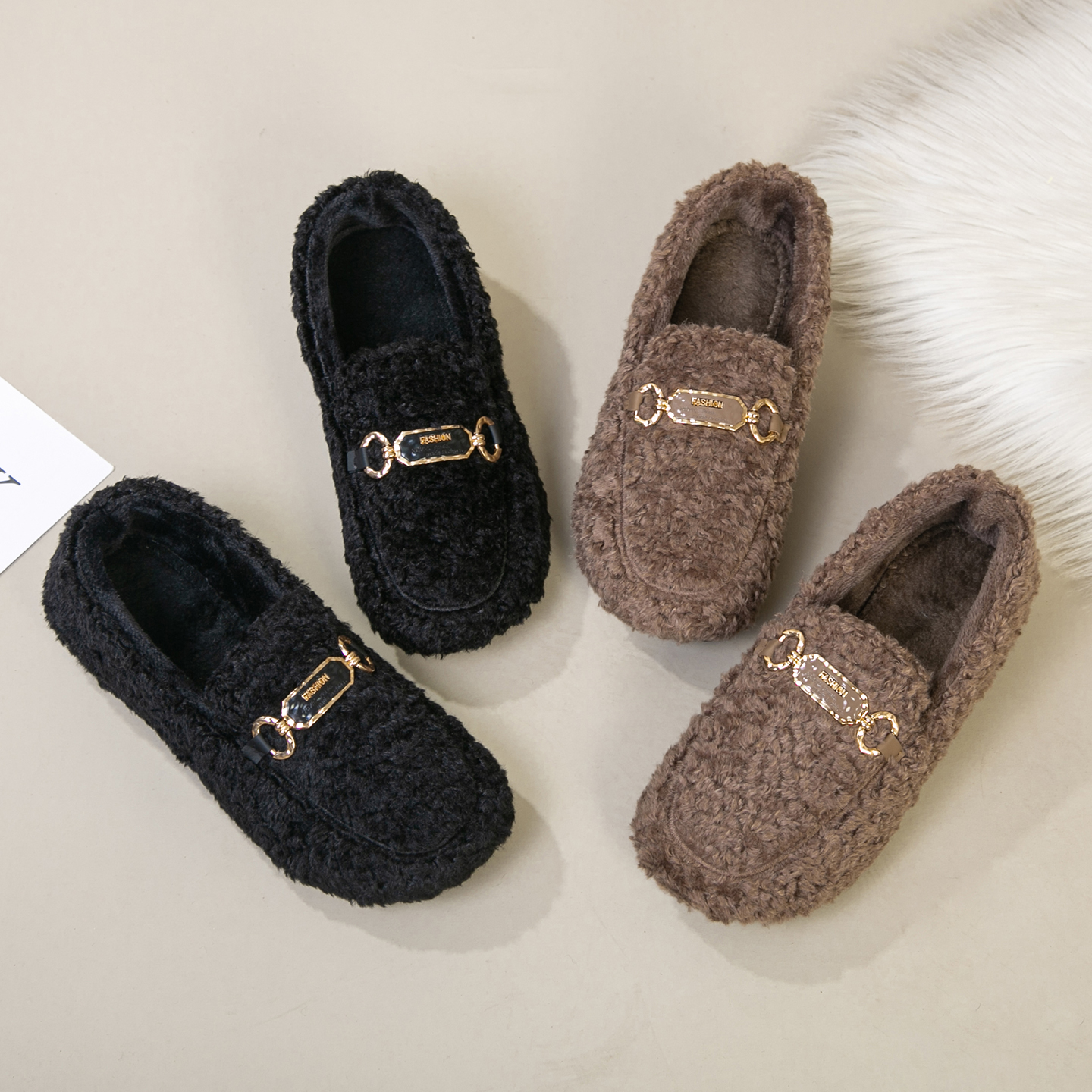 毛绒保暖室内居家用防滑棉鞋 女2024新款 女士包跟外穿 秋冬季 棉拖鞋