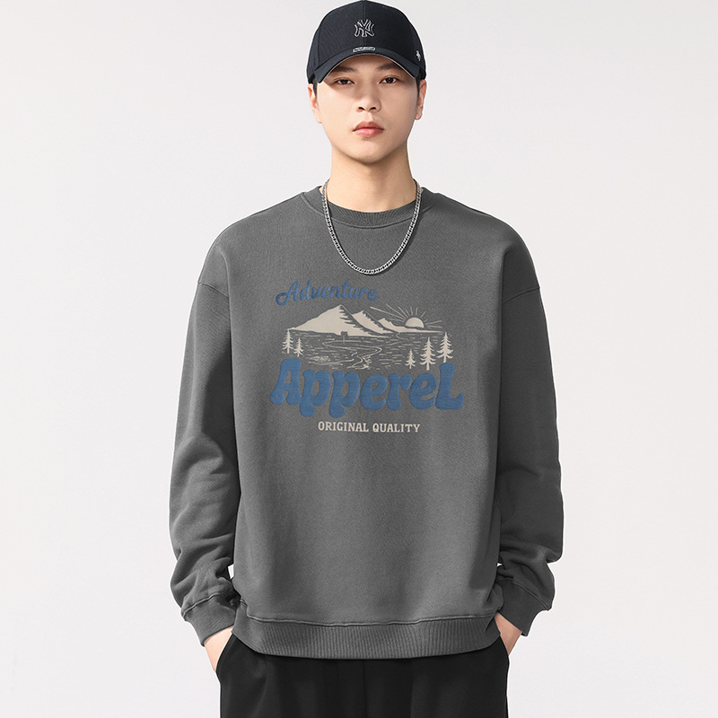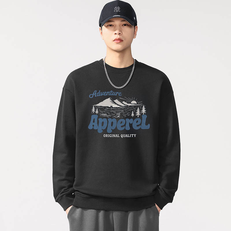 外套圆领宽松胖子长袖 大码 男士 加肥加大2025新款 上衣 卫衣男春秋季