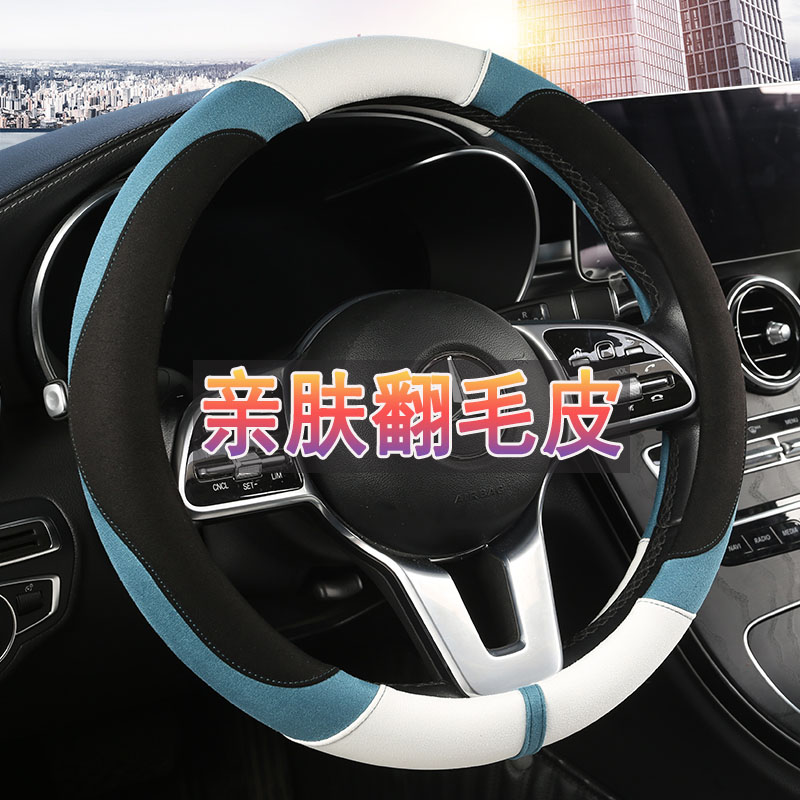 汽车方向盘套四季 通用把套大众速腾朗逸别克英朗gt翻毛皮防滑吸汗
