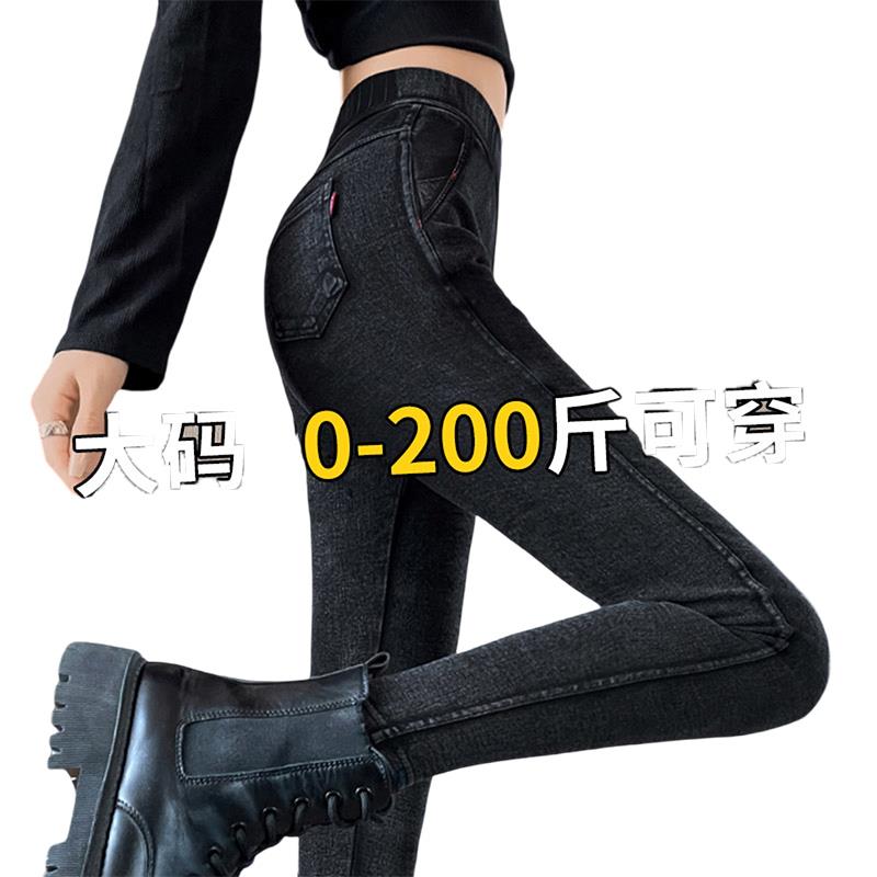 弹黑色小脚裤 女外穿秋冬铅笔小黑裤 胖mm200斤1014e 仔打底裤 大码