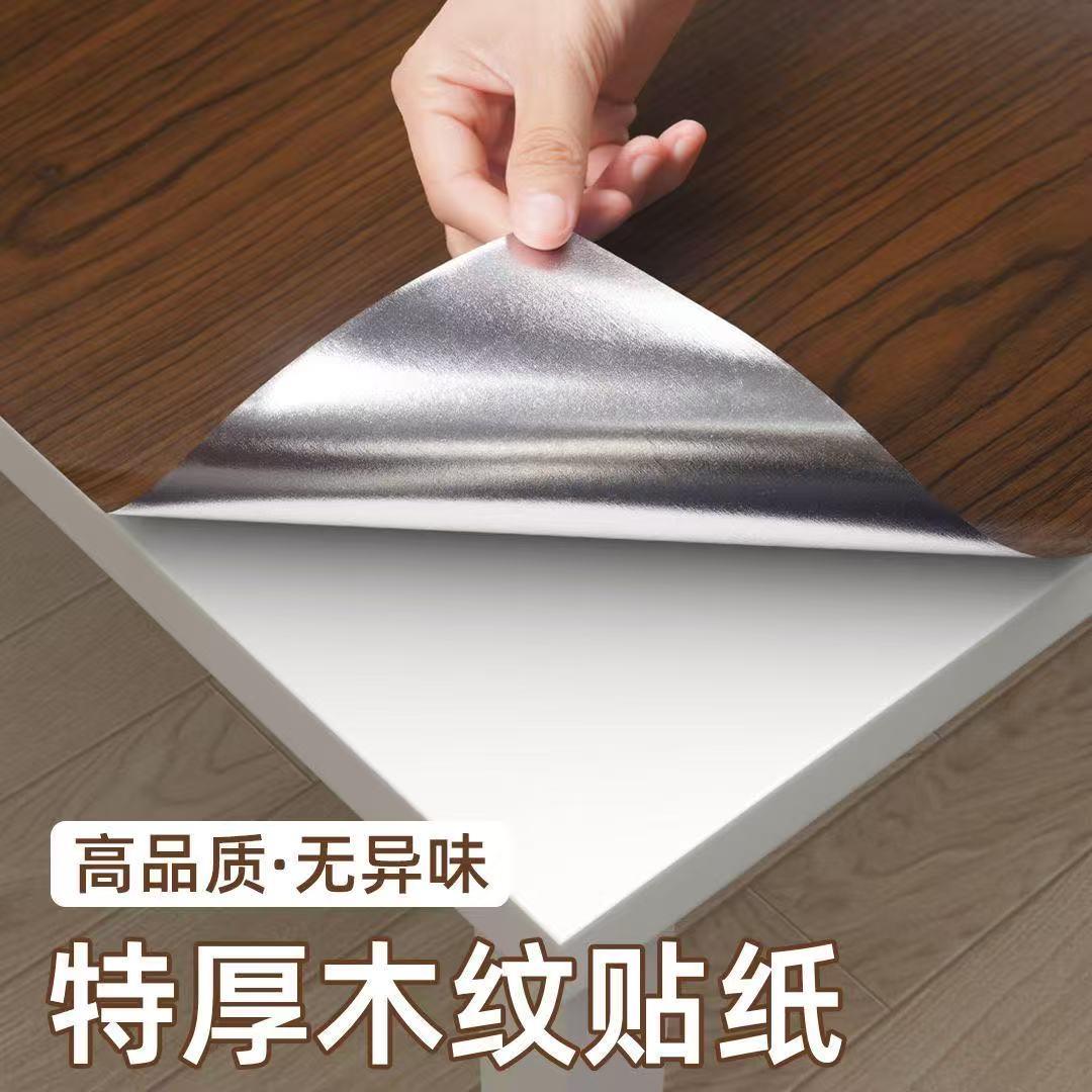 加厚防水木纹贴纸自粘pvc墙纸衣柜橱柜子桌面旧房门家具翻新壁纸