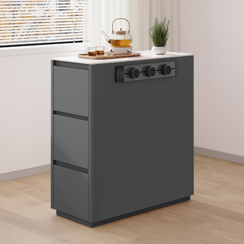 胡桃色岛台餐边柜小户型单独可移动窄岛台多功能厨房一体中导台柜
