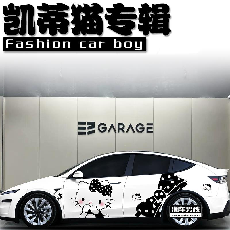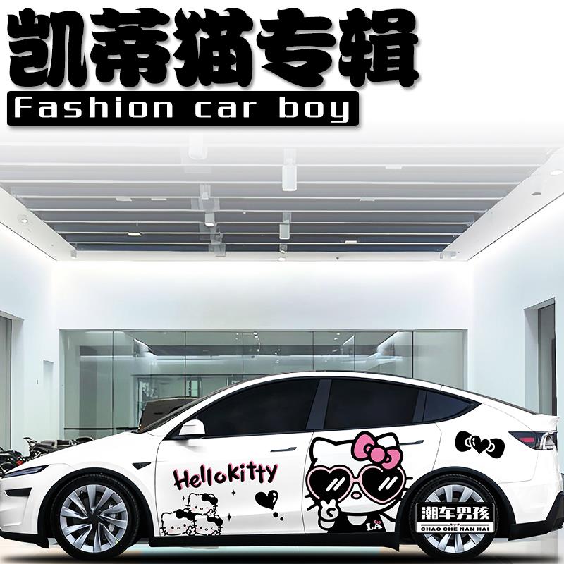 定制 极氪001车贴卡通凯蒂猫贴纸个性 女生喜欢 特斯拉焕新modelY