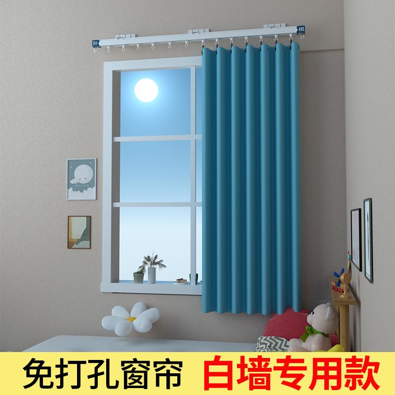飘窗小窗户遮光遮阳帘布 2024新款 免打孔安装 窗帘轨道一整套挂钩式