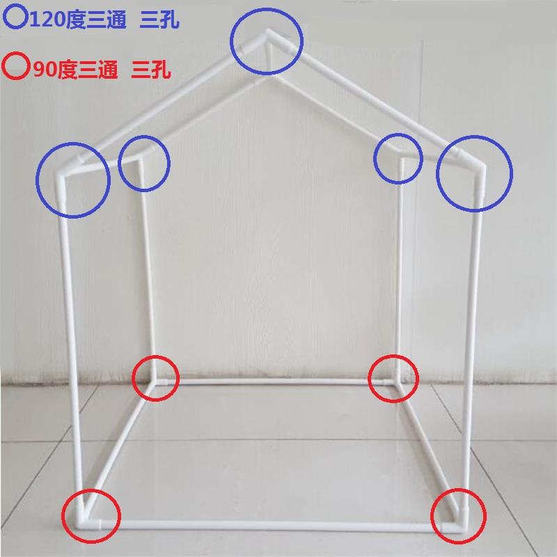 儿童帐篷小房子支架斜角三通接头 外卖箱立体三通加厚 摄影棚三通