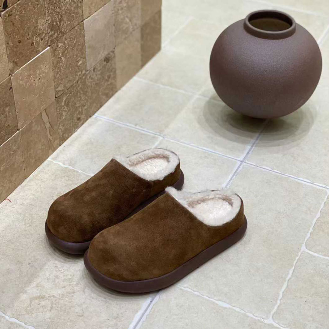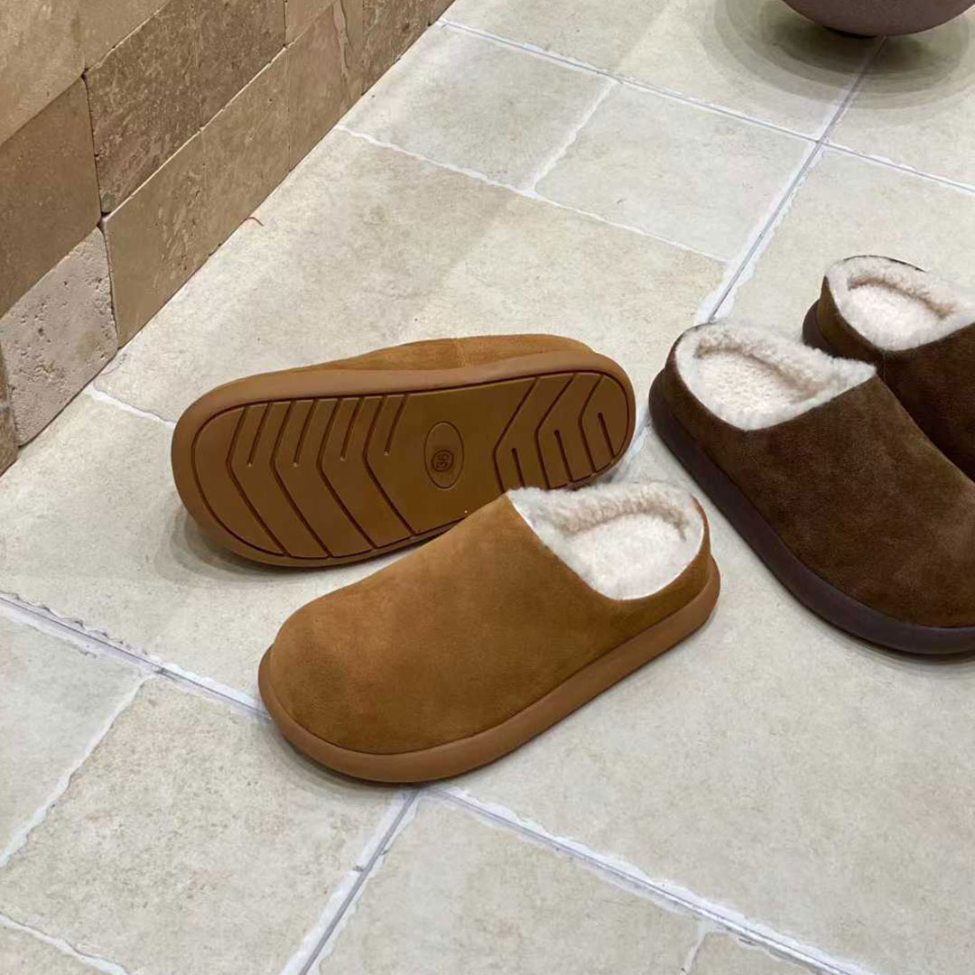 新款 秋冬季 加绒半拖鞋 保暖平底鞋 一脚蹬棉鞋 女勃肯懒人鞋 3cm