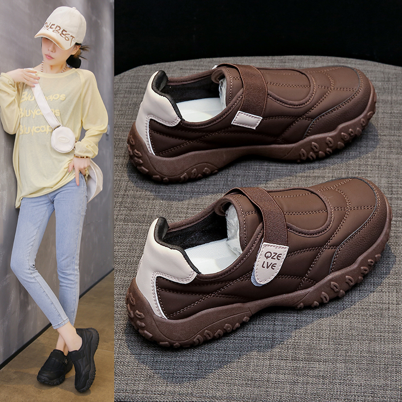 防水防滑不累脚孕妇鞋 女鞋 秋季 女2025新款 子 踩屎感复古棕色运动鞋