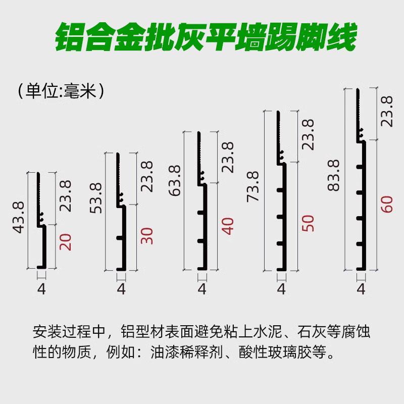铝合金免开槽踢脚线2cm3cm批灰款 平墙面地脚线 隐形极窄贴脚线暗装