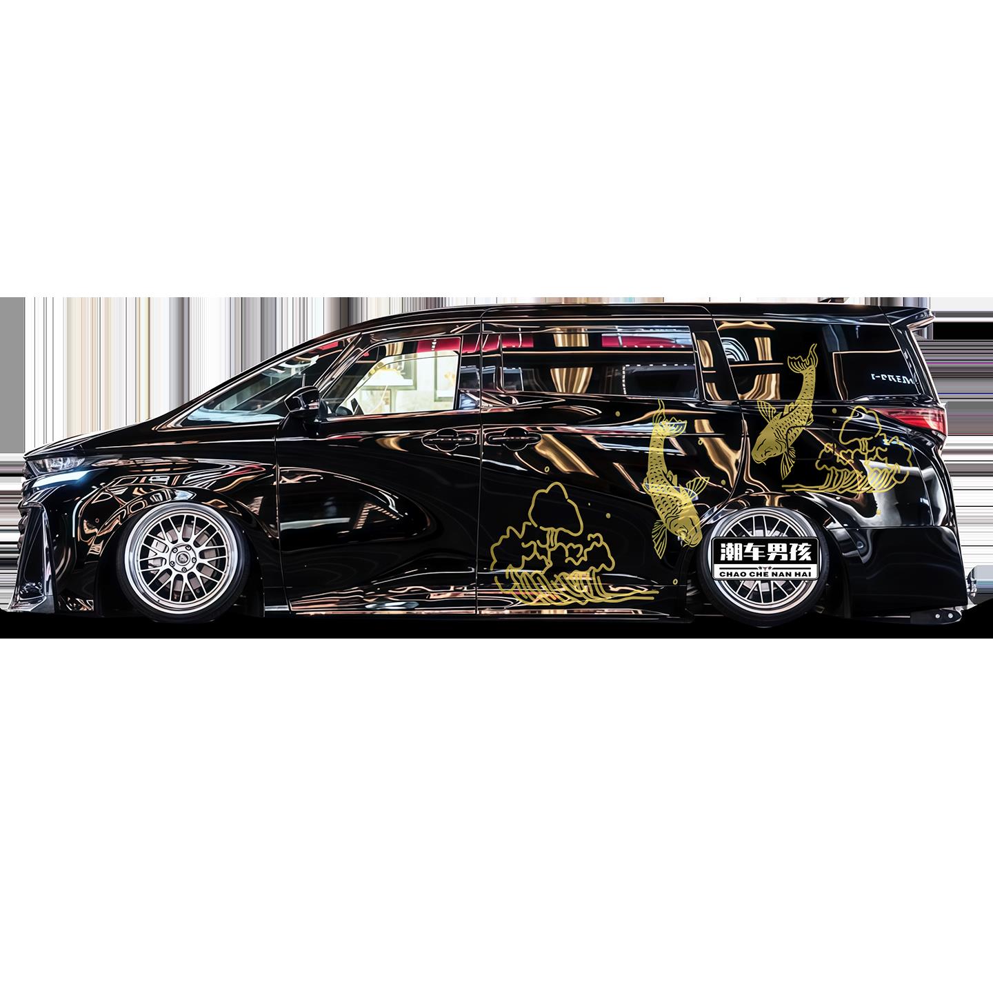 适用于埃尔法车贴威尔法鸿运锦鲤拉花车身两侧车身贴装 定制 饰个性