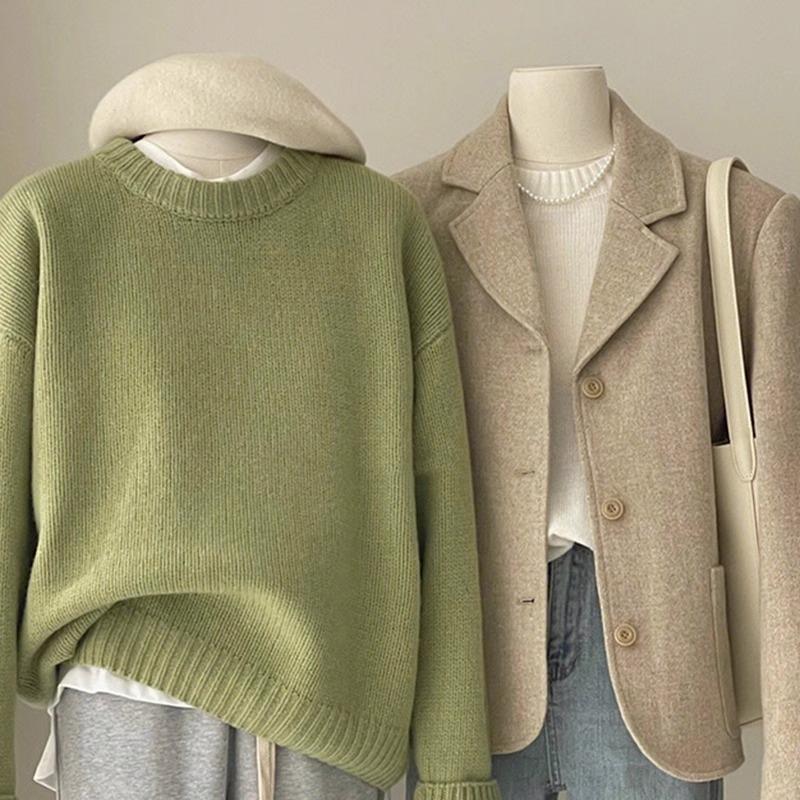 宽松慵懒风上衣圆领显瘦内1012r 女2025秋冬款 时尚 红色针织打底衫