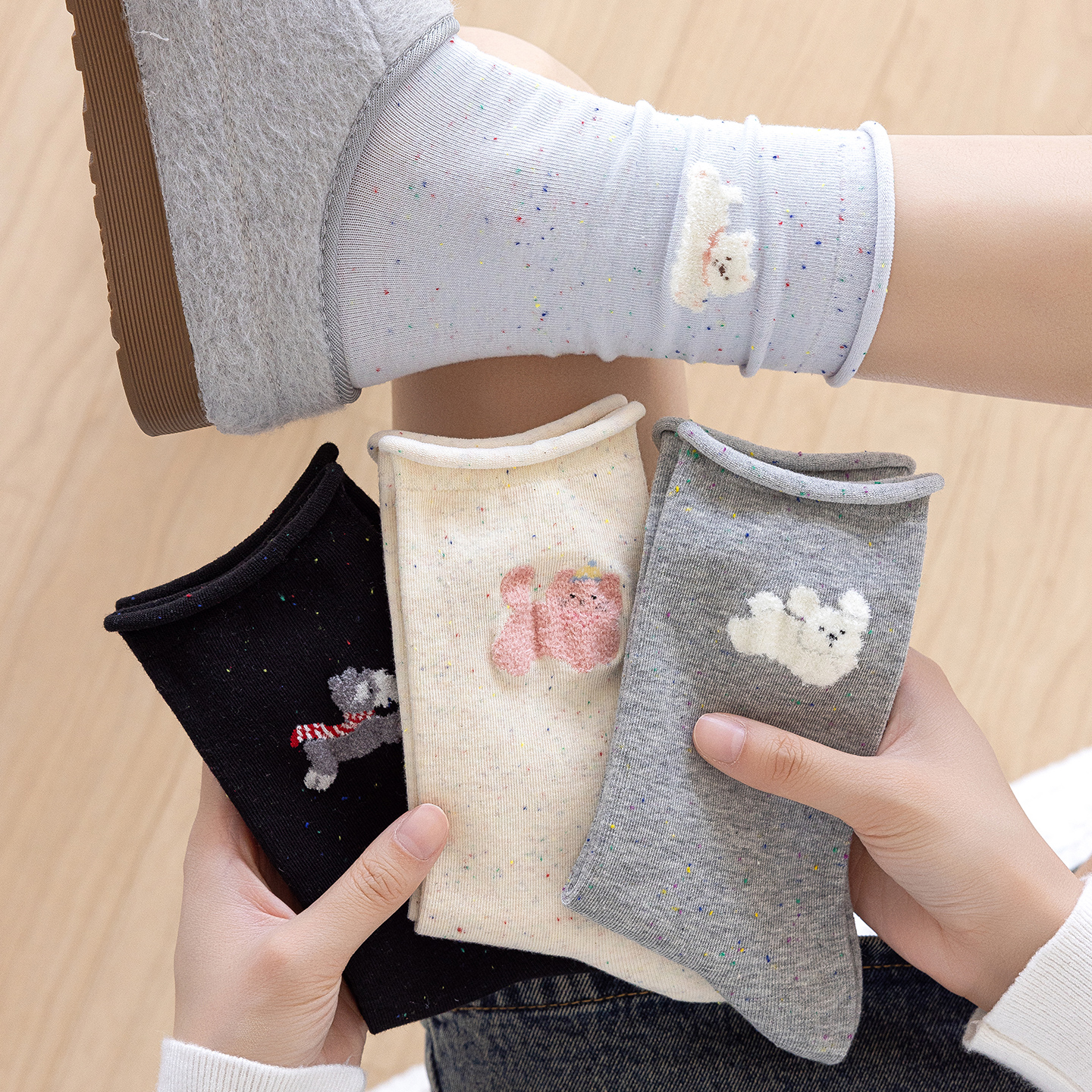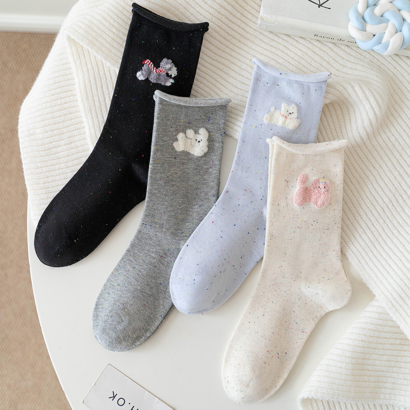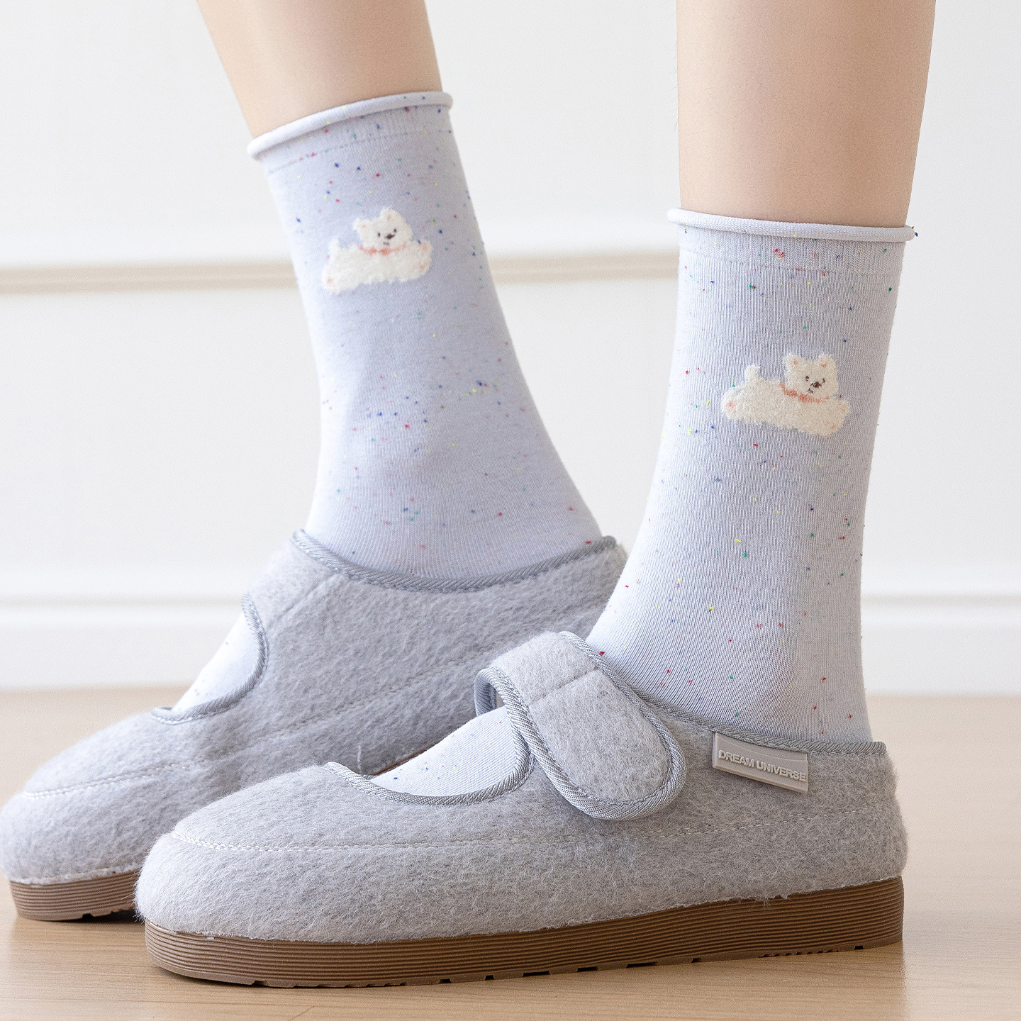 卡拉美拉2025秋冬新款 袜子可爱点子纱棉袜韩系百搭简约穿搭中筒袜