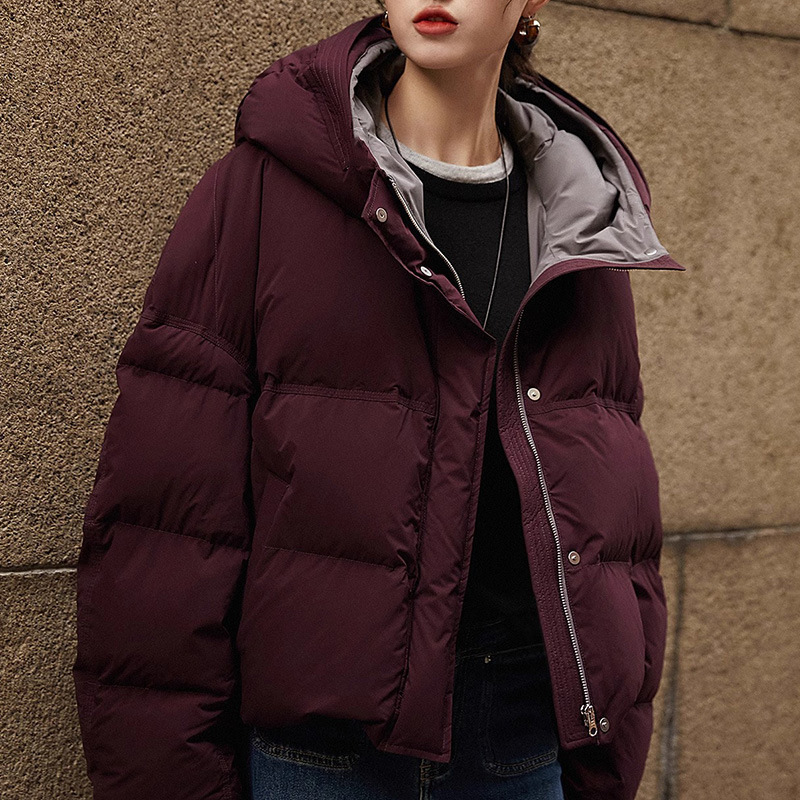 高端平湖女装 减龄撞色95白鹅绒长款 冬新款 连帽羽绒服 鹅绒服 短款