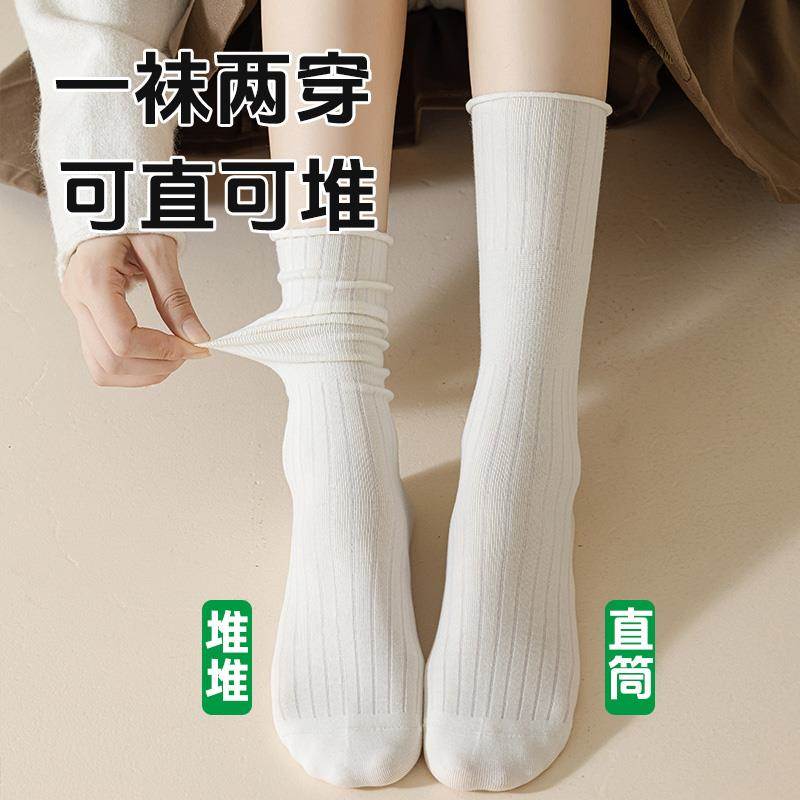 堆堆袜长筒袜女款 长袜子配长靴小腿袜jk白色纯棉靴子春秋羊毛棉袜