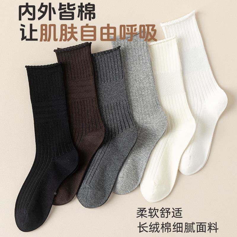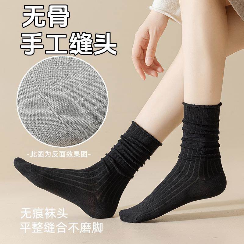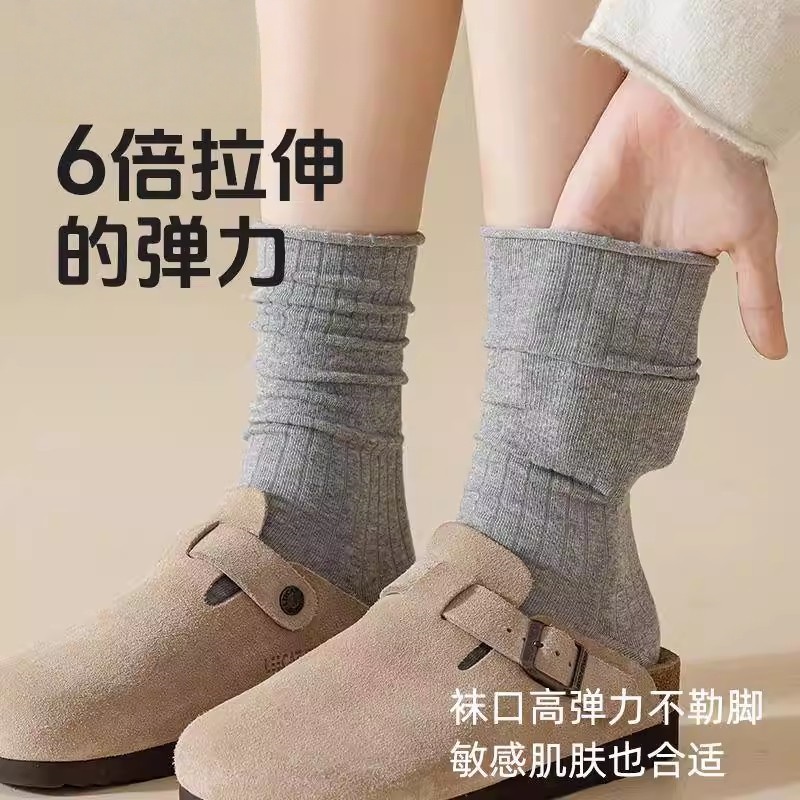 帕兰朵袜子女中筒袜春秋季 棉袜吸汗透气纯色百搭堆堆袜防臭长筒袜