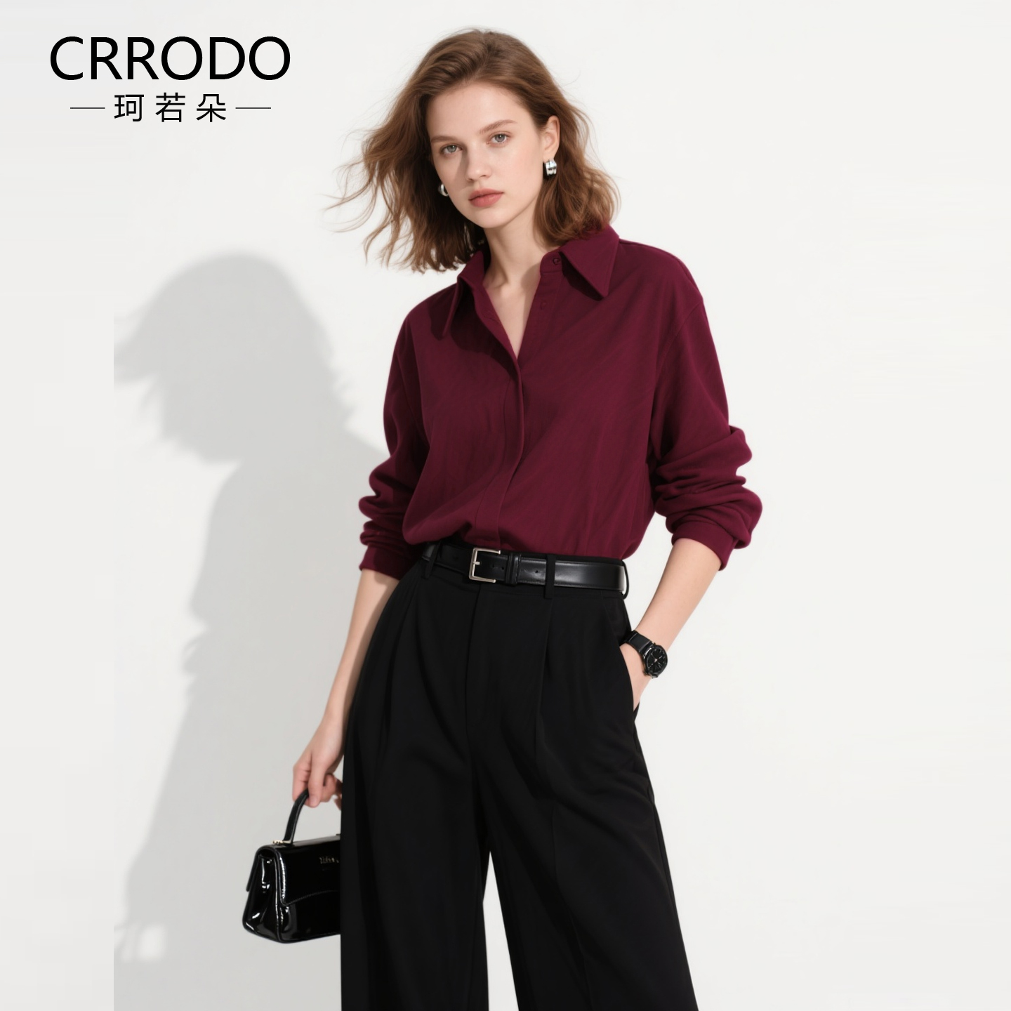 上衣2025秋季 女单排扣宽松通勤长袖 Eland衣恋衬衫 新款 100%棉