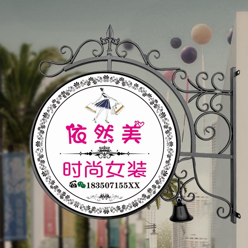 铁艺圆形灯箱广告牌挂墙式 美甲店门头led户外悬挂发光字招牌定做
