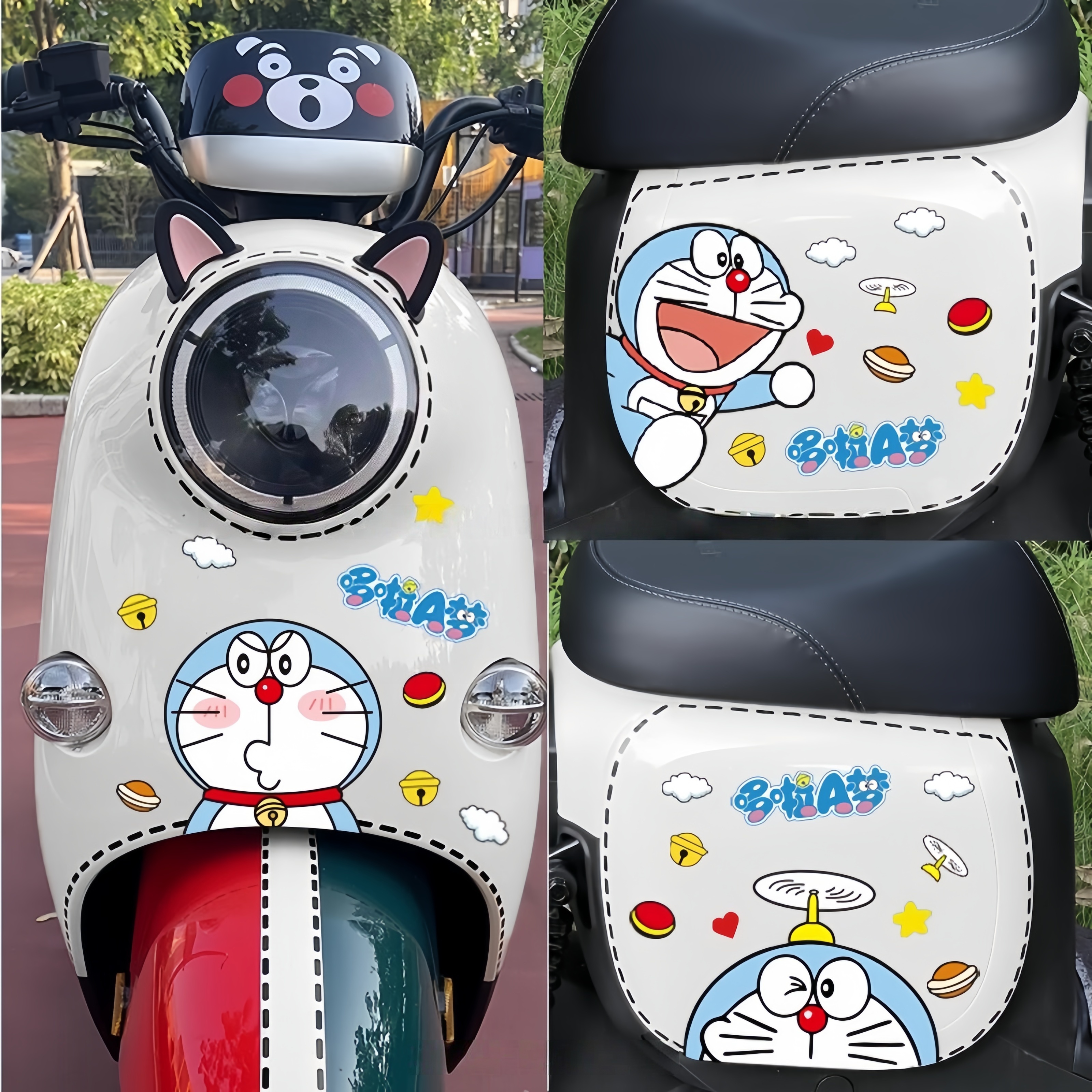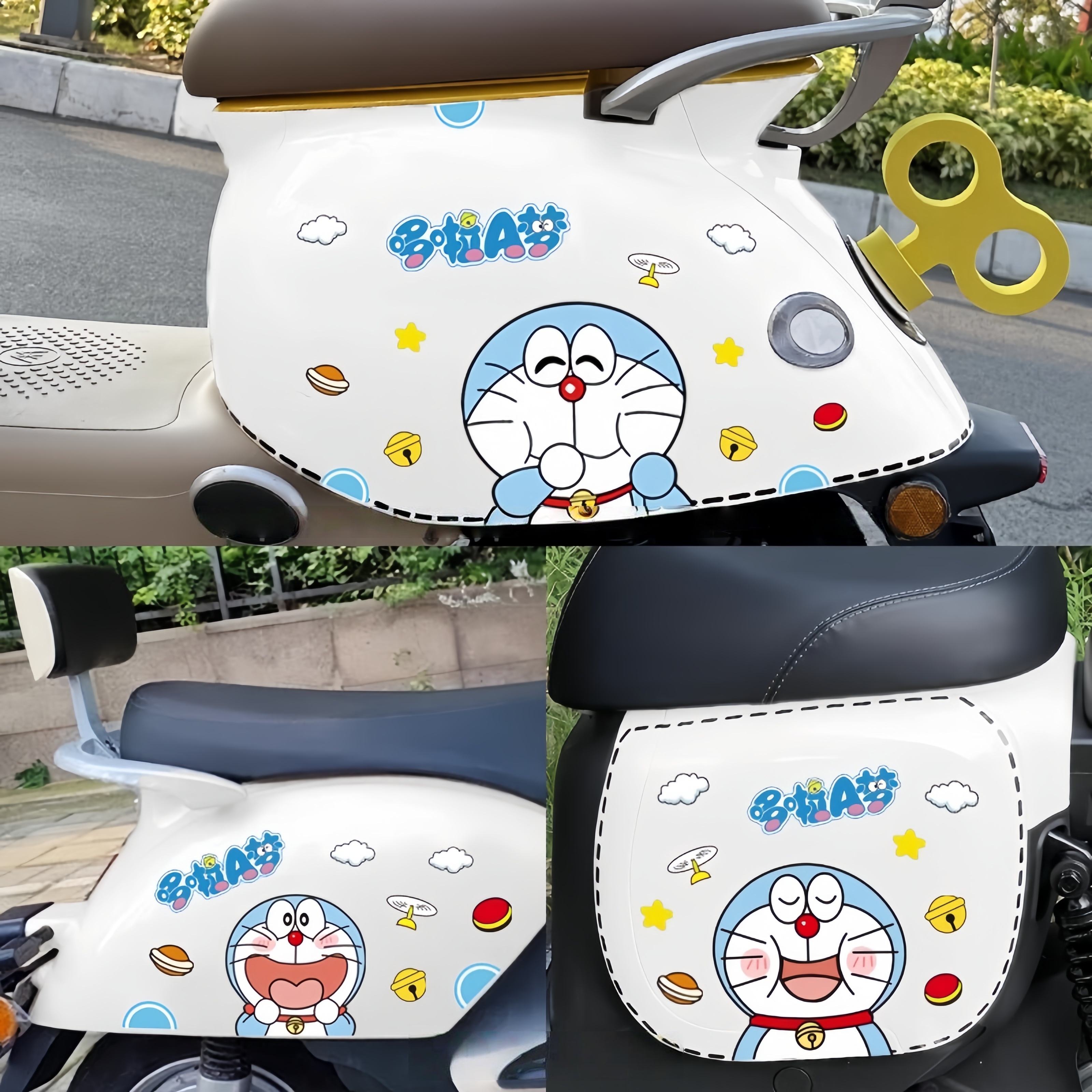 电动车汽车摩托车通用贴纸可爱卡通叮当猫装 饰车身划痕遮挡贴防水