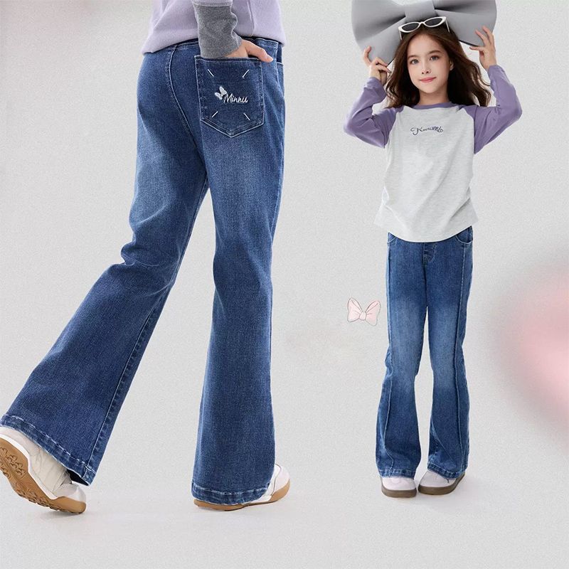 女童裤 儿童裤 子2025秋冬新款 牛仔裤 子 中大童直筒阔腿裤 植木童装