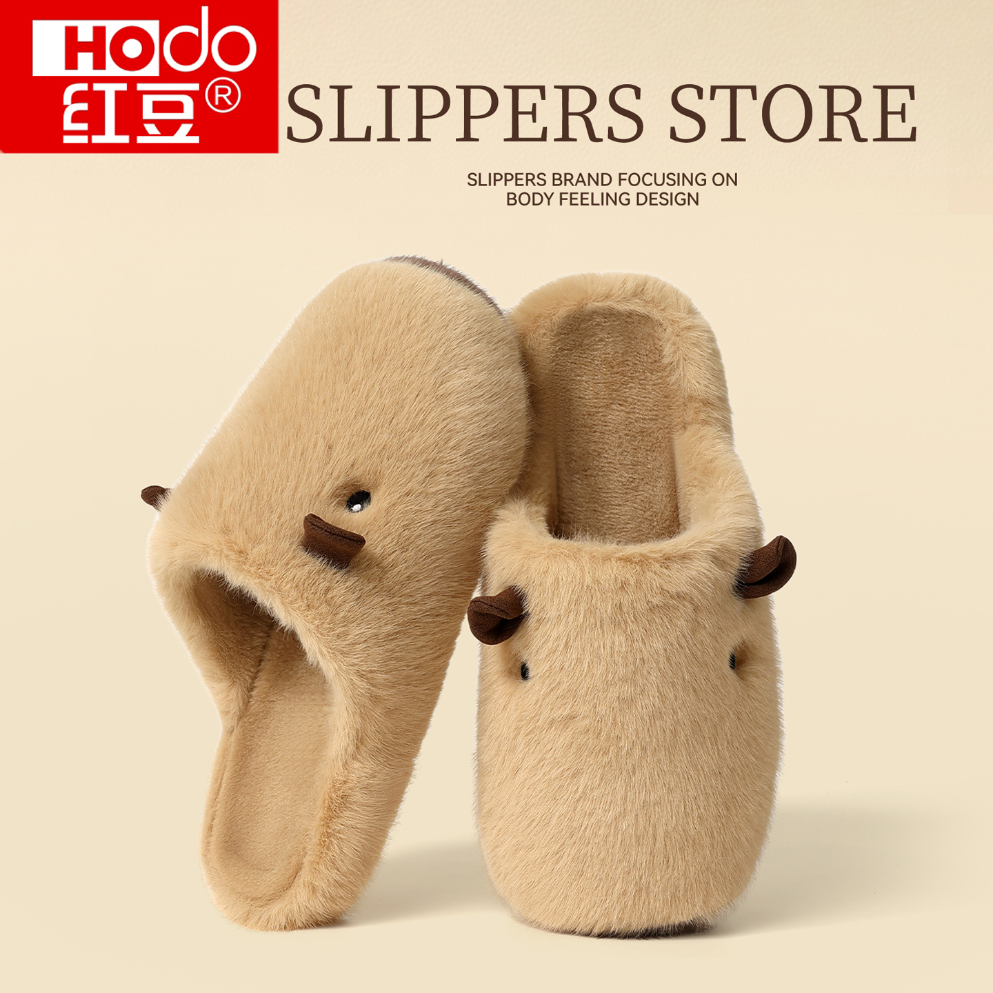家居室内保暖棉拖鞋 红豆卡皮巴拉毛毛绒拖鞋 2025新款 秋冬季 男 女款