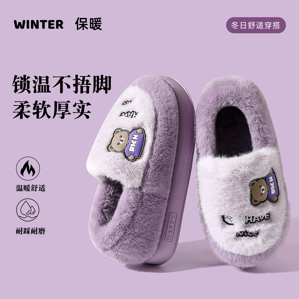 室内家居家防滑厚底踩屎感毛毛绒保暖情侣拖鞋 秋冬季 女 男士 棉拖鞋