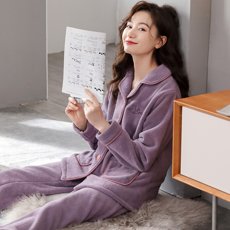 卡通秋冬款 2025年新款 法兰绒家居服 加厚保暖珊瑚绒套装 睡衣女冬季