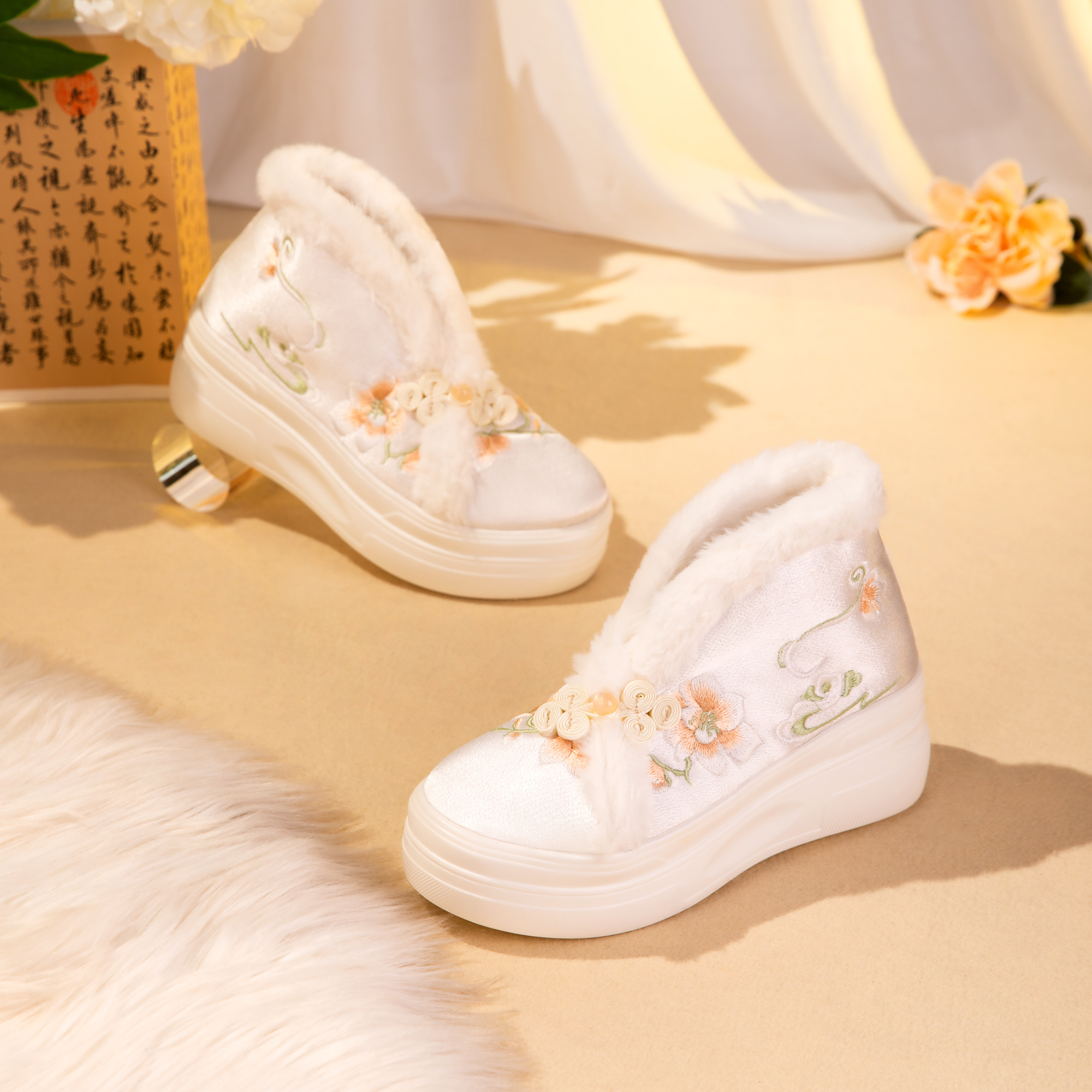 古装 汉服靴时尚 靴 加绒加厚保暖增高雪地棉靴新中式 国风靴子女冬季