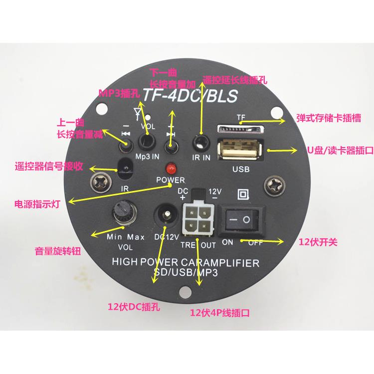 包邮 12v汽车影音有源低音炮小车带遥控 圆形车载音箱 音响4寸改装