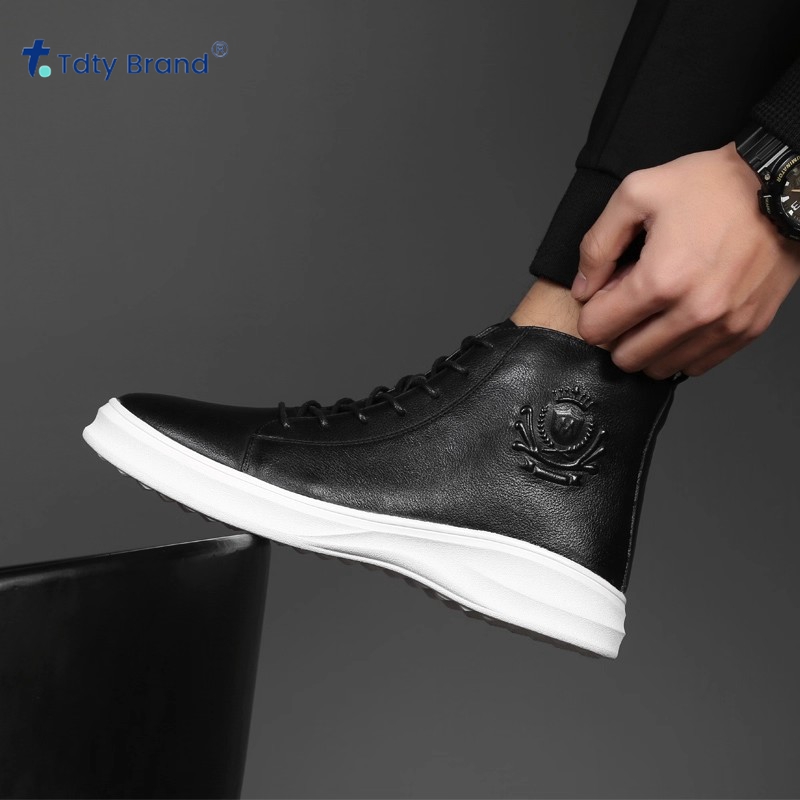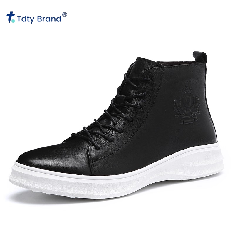 秋冬头层牛皮马丁靴高帮休闲皮鞋 男中帮真皮春秋黑色短靴加绒棉鞋