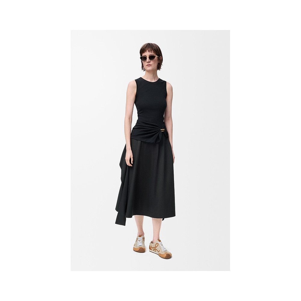 自营1h可退 女士黑色棉侧边拉链开合半身裙 欧洲直邮Loewe罗意威