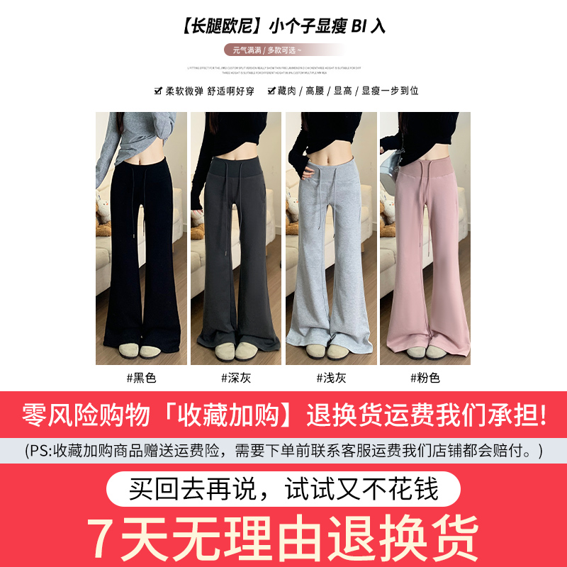 高腰显瘦垂感小个子微喇卫裤 2025新款 女春秋季 粉色lulu喇叭运动裤