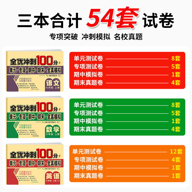 语文数学同步练习册小学卷子资料单元 全优冲刺100分测评卷人教部编版 期中期末考试卷练习题 六年级上下册试卷测试卷全套 2025新版