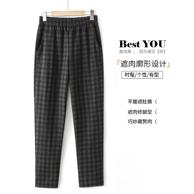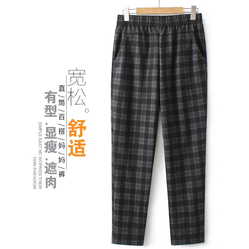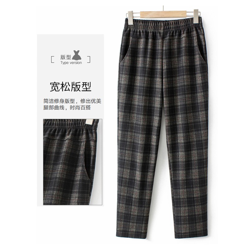中老年人女裤 加绒格子长裤 春秋高腰奶奶直筒老太太 子秋冬款 妈妈裤