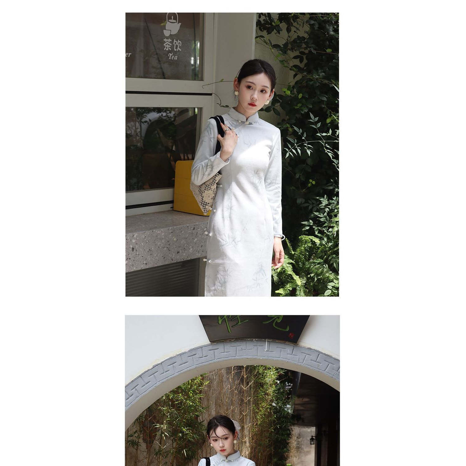 改良旗袍2025新款 少女素雅修身 长袖 年轻款 显瘦民国风 秋冬季 新中式