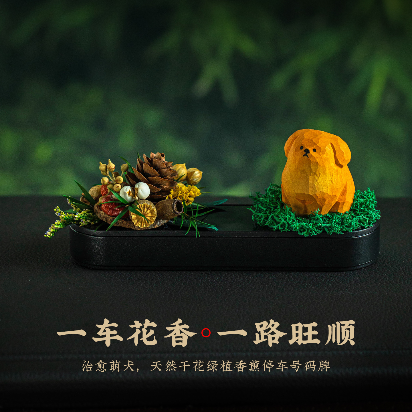 原创2025新款 牌车内饰品摆件 挪车电话牌绿植香薰可爱金毛停车号码