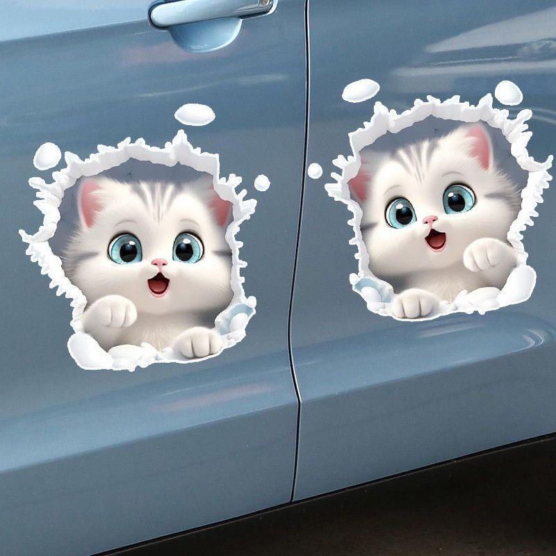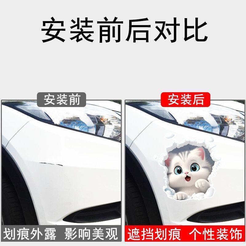 呆萌破洞白猫车身挡风装 饰遮挡划痕贴可爱电动车贴窗花汽车贴纸