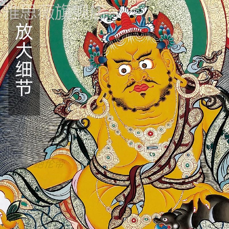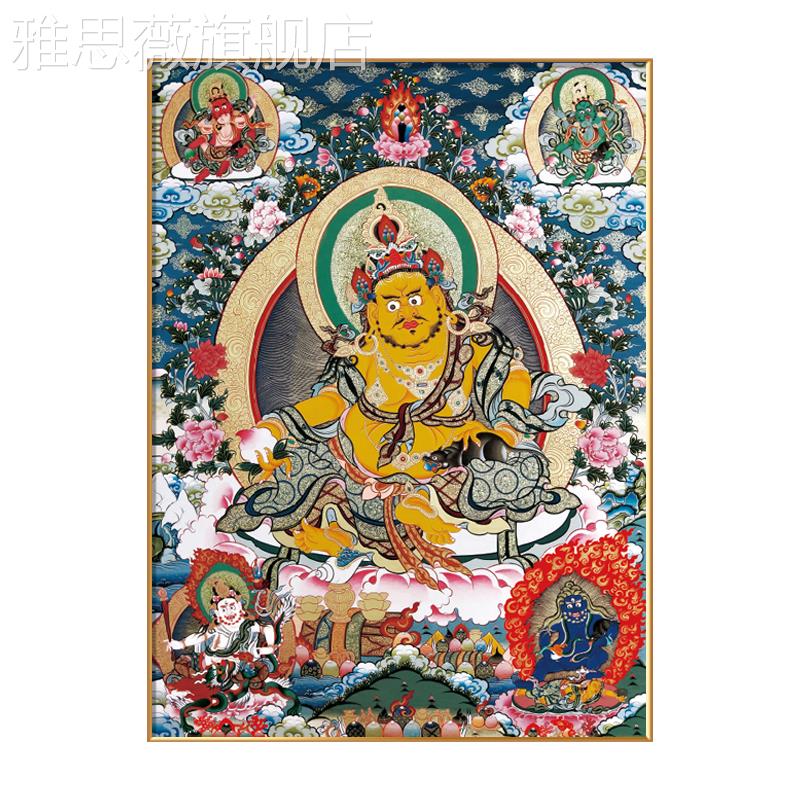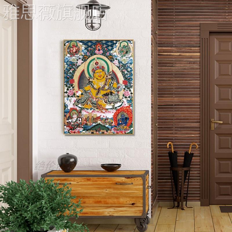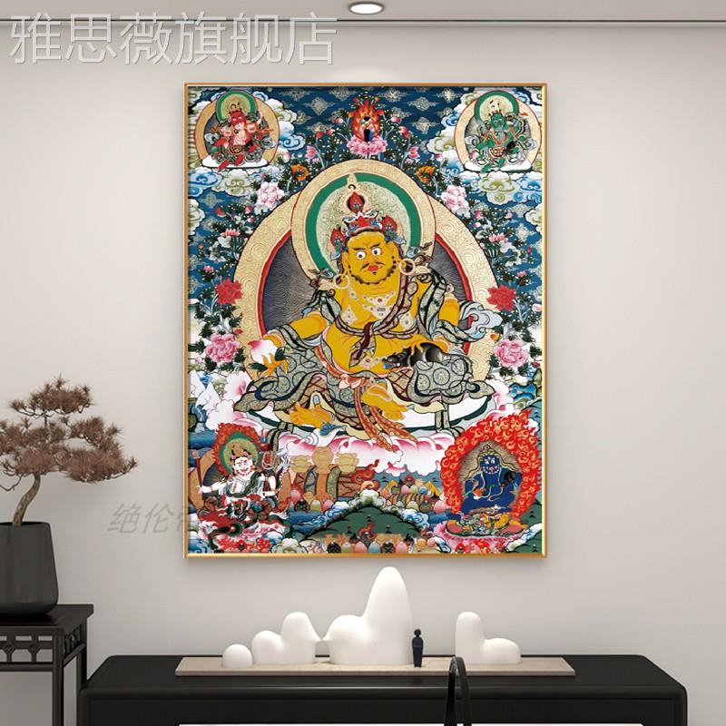 网红藏式 饰画客佛厅堂中办挂公室招财 唐卡画色黄财神藏传佛像堂装